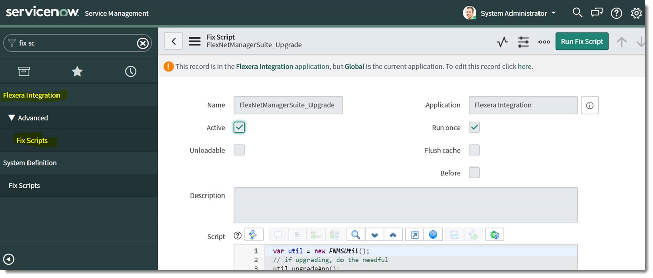 - The ServiceNow integration user should be assigned the role of x_fls_flexera_fnms.admin .